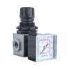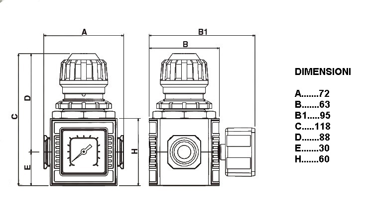 Il regolatore di pressione è un dispositivo che agisce su di un fluido capace di fornire all'uscita una pressione del valore desiderato. Il riduttore a pressione, con funzionamento a pistone, è dotato di un perfetto sistema di regolazione e compensazione che assicura un'erogazione molto precisa e inalterata nel tempo. Il sistema relieving rende costante la lettura della pressione sul manometro anche in fase di riduzione della pressione. La modularità permette di poter assemblare in un unico blocco, più elementi della stessa famiglia con funzioni diverse.CaratteristicheCorpo metallico verniciato con polveri epossidiche. Sistema di regolazione della pressione a pistone. Pomello di regolazione munito di sistema di bloccaggio e ghiera di fissaggio in tecnopolimero. Manometro quadro con scala 0/16 bar - 0/230 psi. Fluido: aria compressa. Temperatura di esercizio da -25° a +60° Modello E/25/3