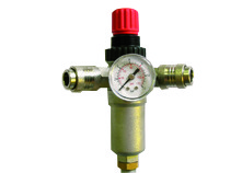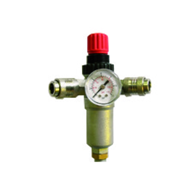 Riduttore di pressione con manometro e 2 rubinetti universali.