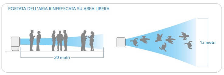 Per rinfrescare, a zone, ambienti aperti o semi aperti come industrie,capannoni, tensostrutture e zone di Lavoro
