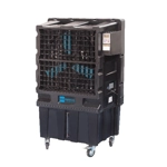 FunzionamentoI raffrescatori evaporativi sono dotati di speciali pannelli in cellulosa inumiditi dall’acqua del serbatoio.L’aria calda viene aspirata da un potente ventilatore assiale, per poi essere rinfrescata attraverso il processo di evaporazione e venire immessa nell’ambiente con una temperatura inferiore.