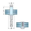 Rivetto in alluminio con chiodo in acciaio zincato - articolo Sacto 101. Conforme ai requisiti delle normative UNI 9200A, UNI 9200B, DIN 7337A e DIN 7337B. Per conoscere le specifiche tecniche consultare PDF allegata.