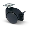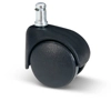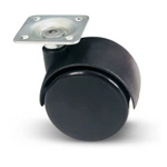 Ruota AVO - Rif.164. Uso arredamento. L'impiego è consigliato per poltrone, arredamenti, mobili per ufficio, espositori, etc. Supporto a cuffia in poliammide 6 nero. Ruota doppia.