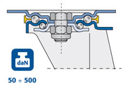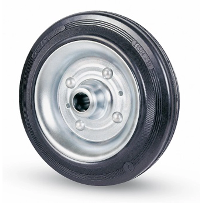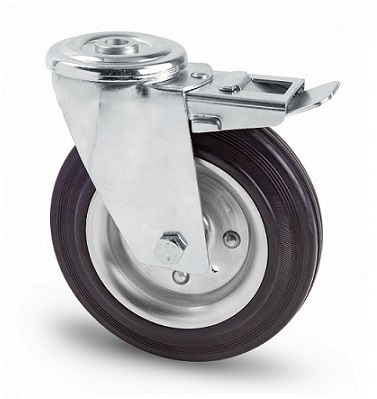 Supporto in acciaio stampato zinco-cromato. Ruota in gomma piena 80 Shore A.