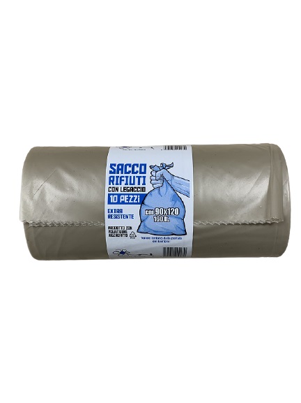 Sacco trasparente per rifiuti - Codice SAT80CF. Sacco per rifiuti con legaccio.Confezione da 10 pz. Extra resistente 160 L - 90x120 cm.