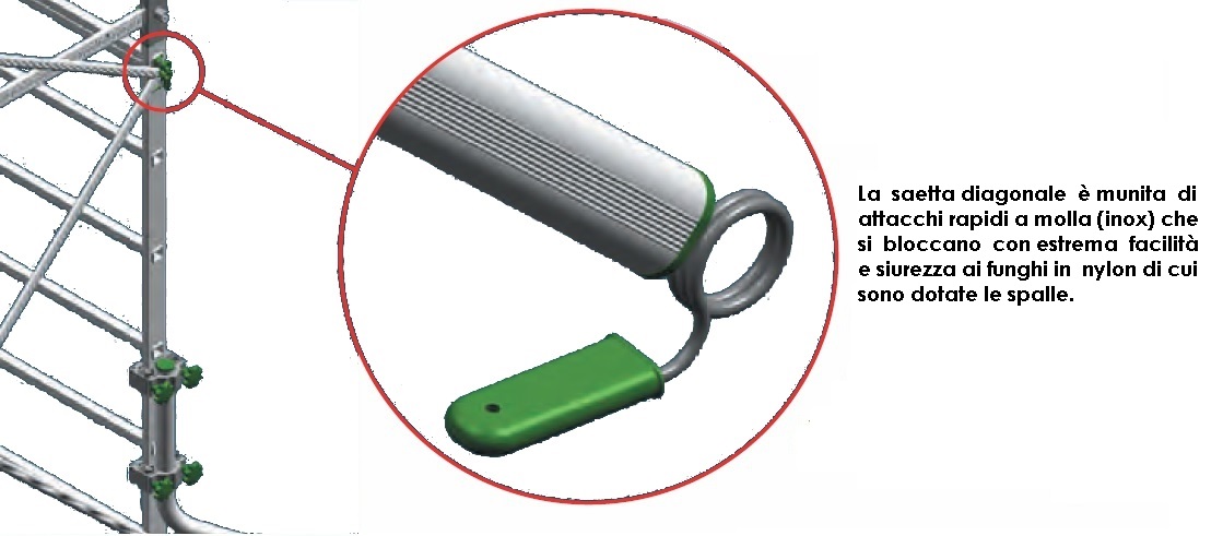 Rif. Facal D657. Componente secondario per Trabattello DOGE65. La saetta diagonale è munita di attacchi rapidi a molla (inox) che si bloccano con estrema facilità e siurezza ai funghi in nylon di cui sono dotate le spalle.