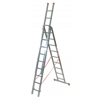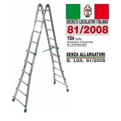 EUROSCALA GENIA è la scala allungabile a sfilo a tre rampe certificata e brevettata, 9 + 9 + 9 gradini, rigorosamente conforme alla normativa europea EN131. Interamente in alluminio con cerniere in alluminio pressofuso ad alta resistenza antiusura e resistenti agli agenti atmosferici. Prodotta a 3 rampe permette di arrivare ad altezze elevate in massima sicurezza. Dotata di particolari accorgimenti che la rendono una scala solida e sicura: barra stabilizzatrice di serie su tutte le scale EUROGENIA con calzari in gomma antiscivolo, cinghie antidivaricamento, ganci antisfilo fissati a ramponi d'acciaio, pioli zigrinati antiscivolo che aumentano la stabilità di lavoro dal professionista al privato.Di particolare rilievo l'assoluto rapporto qualità-prezzo: contenuta nei costi è dotata di preziosi accessori che la rendono solida e particolarmente facile all’uso.QUANDO UTILIZZARE EUROSCALA GENIA?Per raggiungere altezze elevate in totale sicurezza, per raggiungere tetti, pulizia grondaie, canne fumarie, vano scala, trattamento travi e pulizia sottotetti...Indicata sia ad utenza professionale con uso intensivo, che privata.Scala utilizzabile in tre posizioni: - chiusa - aperta - appoggiata al muro. L'immagine è dimostrativa.Per il numero di scalini, leggere la scheda tecnica.