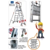Scala a castello in alluminio CASTA' 8 gradini+pedana. Particolarmente indicata per un uso professionale intensivo. Ideale per magazzino industriale, lavori su soppalchi, lavori di manutenzione, etc. La scala CASTA' è richiudibile e occupando da chiusa uno spessore di soli 30 cm. facilita il trasporto e lo stoccaggio. E' su ruote, 2 anteriori diam.80 mm. piroettanti e autofrenanti e 2 posteriori fisse, che permettono uno spostamento facilitato della scala e maggiore stabilità in fase di lavoro. E' dotata di una grande pedana pieghevole da 40,5x51 cm. in alluminio fuso forato per facilitare e mantenere la pulizia.Dispone di ampi gradini profondi 85 cm con zigrinatura antiscivolo, fissati al montante mediante un energico doppio bloccaggio idraulico senza rivetti.La scala a castello CASTA' offre sicurezza con 4 protezioni: paracolpi laterali, richiudibili, cinghie posteriori e supporto frontale che ha anche la funzione di porta attrezzi. Garantisce in questo modo la sicurezza in 4 posizioni diverse di lavoro, frontale, laterali e posteriore.Sicurezza garantita anche dalla barra stabilizzatrice con supporti delle ruote in alluminio fuso e dall'aggiunta di stabilizzatori telescopici in dotazione che aumentano le potenzialità di supportare pesi.La possibilità di aprire un solo stabilizzatore rende minima la distanza al punto di lavoro.E' dotata di doppia certificazione: è conforme al Decreto Legislativo 88/2008 100 Kg. max con la barra stabilizzatrice e conforme alla NUOVA NORMATIVA EN 131-7 150 kg. max con l'apertura aggiuntiva degli stabilizzatori telescopici di cui la scala è dotata di serie.La scala Castà è particolarmente indicata per un uso professionale intensivo. Ideale per magazzino industriale, lavori su soppalchi, lavori di manutenzione....CONTROLLARE ATTENTAMENTE LE MISURE PRIMA DI ORDINARE.LE CASTA' NON SI SOSTITUISCONO.L'immagine è dimostrativa.Per il numero di scalini, leggere la scheda tecnica.