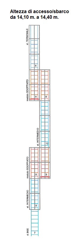 La scala ha un'altezza di accesso/sbarco da 14,10 m. a 14,40 m. ed è composta da: