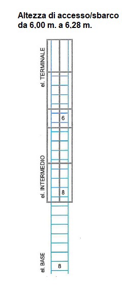 La scala ha un'altezza di accesso/sbarco da 6,00 m. a 6,28 m. ed è composta da: