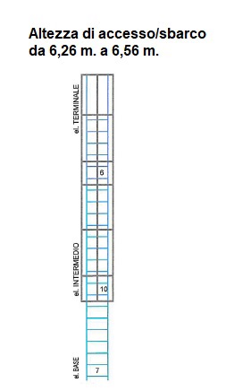 La scala ha un'altezza di accesso/sbarco da 6,26 m. a 6,56 m. ed è composta da: