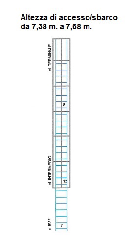 La scala ha un'altezza di accesso/sbarco da 7,38 m. a 7,68 m. ed è composta da: