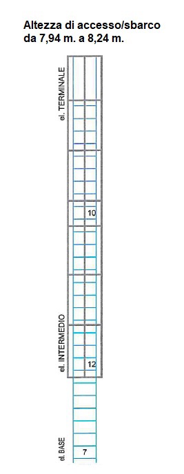 La scala ha un'altezza di accesso/sbarco da 7,94 m. a 8,24 m. ed è composta da:
