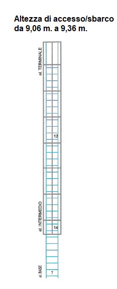 La scala ha un'altezza di accesso/sbarco da 9,06 m. a 9,36 m. ed è composta da: