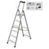 La scala è dotata di: Pedana di calpestio in alluminio fuso, vaschetta porta oggetti, cerniera in alluminio fuso, gancio di sicurezza per blocco pedana, gradini doppio bloccaggio senza rivetti, calzari in gomma antisdrucciolo per un solido appoggio. ACCESSORIO NON COMPRESO: COPPIA MANCORRENTI