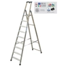La scala è dotata di:Pedana di calpestio in alluminio fuso, vaschetta porta oggetti, cerniera in alluminio fuso, gancio di sicurezza per blocco pedana, gradini doppio bloccaggio senza rivetti, calzari in gomma antisdrucciolo per un solido appoggio. ACCESSORIO NON COMPRESO: COPPIA MANCORRENTI