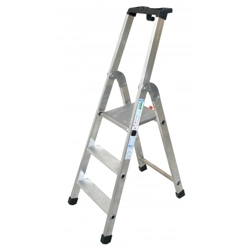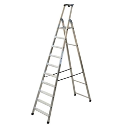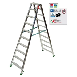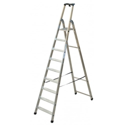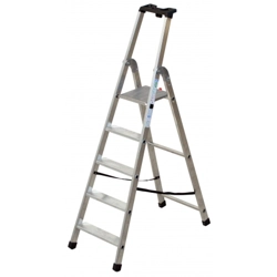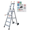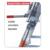 Rif. Facal QM-9. Scala da lavoro di dimensioni contenute con ruote inattive in presa solo dopo il sollevamento della parte anteriore. Maniglie ripieghevoli per il sollevamento del lato di salita. Mancorrenti di sicurezza più 10 cm. oltre la vaschetta superiore. Compassi in alluminio di grandi dimensioni a garenitre stabilità e compattezza durante l'uso e lo spostamento. Finiture plastiche: RAL 9004 nero. Maniglie: RAL 2004 arancio.Meccanismo delle maniglie Modello Comunitario Depositato. L'immagine è dimostrativa. Per il numero di scalini, leggere la scheda tecnica.