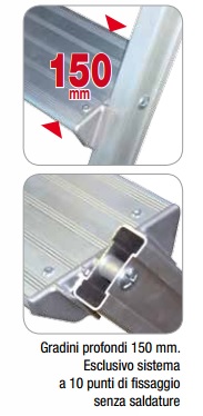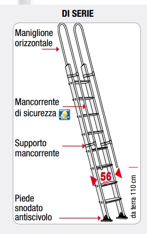 S15/2 è grande scala singola d'appoggio in alluminio a gradino largo profondo 150 mm. con facile salita ben inclinata a 60°, che permette di salire con il corpo dritto. Gradini profondi 150 mm., con esclusivo sistema a 10 punti di fissaggio senza saldature. Serie di specifici accessori la rendono solida ed accogliente al pari di una scala fissa. E' dotata di serie di: -maniglione orizzontale-mancorrente di sicurezza -supporto mancorrente -piedi snodato con zoccoli di acciaio, ricoperti in gomma antiscivoloAccessori NON INCLUSI e che devono essere ordinati a parte: Ganci corti FE-011Ganci lunghi FE-010/1Correntino CorrSupporti per correntino FU-076IN CASO DI NECESSITA' DI MANIGLIONI VERTICALI (se ci sono ostacoli allo sbarco), INVECE CHE ORIZZONTALI, cliccare qui IN QUESTO CASO LA SCALA VERRA' CONSEGNATA SOLO CON MANIGLIONI VERTICALI E PRIVA DI QUELLI ORIZZONTALI. Controllare attentamente le misure prima di ordinare. Le scale S15 System NON SI sostituiscono.L'immagine è dimostrativa.Per il numero di scalini, leggere la scheda tecnica.