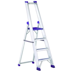 MADE IN ITALYScala a doppia salita ideale per utilizzo professionale P1.Realizzata in alluminio estruso nervato.Ideale per industria, installatori, pittori.Portata 150 Kg.I gradini saldati ai montanti, la rendono ultraresistente.Gradini antisdrucciolo con profondità 8 cm. e passo 25 cm.Montanti con sezione 80x25 mm.Base e primo gradino rinforzati con squadrette in alluminio.Due barre rigide antiapertura/chiusura in acciaio.Cerniere antiapertura in acciaio.Piattaforma superiore da 39x18 cm.Tamponi ergonomici maggiorati antisdrucciolo in PVC.