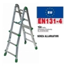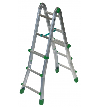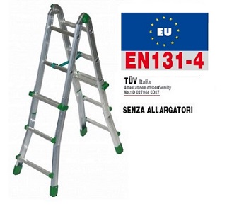 BK1 Scala con 3 gradini interni e 3 gradini esterni - Codice Facal BK/1. EUROBRIKO16 è scala universale, tutta in alluminio, di qualità tecniche superiori a conferma di prodotto unico. Cerniere fuse con anime d'acciaio incorporate inattaccabili da agenti atmosferici ed impossibili al cedimento (Brevetto). Ampie soluzioni d'utilizzo con opzione di libera a cavalletto che permette l'apri/chiudi strategico in ambienti ridotti. Gradini esterni fissati ognuno con 6 saldature robotizzate (3+3). Massimi sviluppi ottenuti dal progetto unico delle cerniere che portano i montanti alla massima lunghezza. Le speciali cerniere permettono 2 possibili usi:LIBERA: la scala a cavalletto può aprire e chiudere liberamente fin contro i fermi di massima apertura.BLOCCATA: la scala a cavalletto può essere volutamente bloccata in un'unica posizione di massima apertura.Punti di forza delle scale EUROBRIKO16: 1' punto: il taglio sagomato dei montanti permette di raggiungere la massima lunghezza in corrispondenza delle articolazioni. Le cerniere legano con 18 punti di graffatura idraulica ogni montante, fino a ottenere il serraggio più estremo.2' punto: solide articolazioni in alluminio fuso di sagoma, a seguire quella dei montanti per portarli con le estremità a contrastarsi di testa su un appoggio di ben 35mm. Senza precedenti! 3' punto: il fulcro delle cerniere, portato in asse perfetto alla spinta dei montanti, eleva la resistenza delle articolazioni al massimo livello progettuale. 4' punto: le anime di acciaio colate in unico corpo nelle articolazioni, escludono ogni possibile cedimento alle belle e pratiche cerniere fuse.5' punto: ampie impugnature anatomiche dei tiranti gradini facilitano la presa e il tiro.Impiego e utilizziPer la pulizia di grondaie e tetti , per la potatura di piante e alberi da frutto , ideale per imbiancare vano scala e ambienti con presenza di gradini e/o pendenze.Per la ristrutturazione e la pulizia di travi e sottotetti, canne fumarie. L'immagine è dimostrativa.Per il numero di scalini, leggere la scheda tecnica.