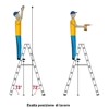MASTER PRO è una scala di grandi dimensioni per uso professionale intensivo indicata per alti solai, manutenzioni industriali ed allestimenti fieristici. E' una scala di alluminio a doppia salita a pioli da 30x30 mm. a rombo inclinati per l'appoggio piano del piede da ambo i lati. Essendo costruita interamente in alluminio, non necessita pertanto di particolari cure. I depositi di sporco provocati dall'uso possono essere rimossi con acqua o pasta per la pulizia. I pioli sono fissati ai montanti tramite ribordature passanti oltre a saldature supplementari che ne garantiscono eccezionale tenuta. I montanti 30x65 mm. nervati garantiscono rigidità anche a quote elevate. E' dotata di cerniere di acciaio. MASTER PRO è costruita nel rispetto della normativa nazionale D.P.R. 547/55, della normativa tecnica europea UNI EN 131-1/2, e quindi in linea con quanto richiesto dal D.Lvo 626/94.L'immagine è dimostrativa.Per il numero di scalini, leggere la scheda tecnica.