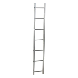 Scala verticale semplice SENZA GABBIA - Security System. La scala SGS360 è composta da n.2 scale a 6 gradini. Il Decreto Legislativo 81/2008 art.113 prevede che le scale a pioli fissate a muro, sono ammesse senza gabbia fino a 5 mt. Realizzata in alluminio. La scala è completa di maniglione di sbarco semplice. La scala deve essere fissata a muro, tramite staffe di fissaggio ogni 2,00 metri. Le staffe di fissaggio devono essere ordinate a parte (codice FE-165). Per la scala SGS360 devono essere previste 6 staffe.Il maniglione viene consegnato smontato. IN CASO DI NECESSITA' DI MANIGLIONI TELESCOPICI, INVECE CHE FISSI, cliccare qui IN QUESTO CASO LA SCALA VERRA' CONSEGNATA SOLO CON MANIGLIONI TELESCOPICI E PRIVA DI QUELLI FISSI.