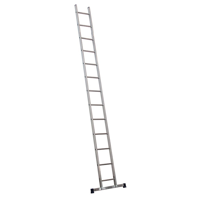Rif. Facal SL-13/B. STILO/S è scala semplice d'appoggio di 131 scalini a pioli quadri 24x24 mm. in leghe d'alluminio speciali. Calzari alti in gomma antisdrucciolo di base e copri testa in alto. E' una scala di dimensioni contenute ed è particolarmente leggera maneggevole e molto rigida per le leghe usate. I pioli sono fissati energicamente ai montanti con doppia allargatura idraulica e ribordatura. SENZA RIVETTI!! Stilo/S con barra stabilizzatrice è conforme alla Normativa Europea EN131.