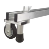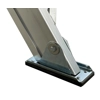 Quando la scala viene sollevata tramite le apposite maniglie, i tamponi di fermo si sollevano, permettendo alle ruote in PVC di scorrere facilmente sul terreno.