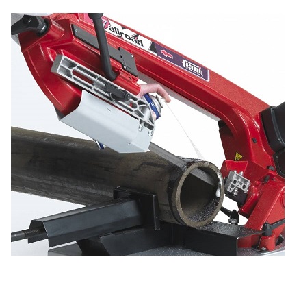 Caratteristiche tecniche Capacità di taglio maggiorata e unica: 213x150 mm. Sistema esclusivo del braccio rototraslante (Patent Pending). Discesa del braccio: manuale. Altezza lama 19 mm. Apertura morsa 213 mm. Massima versatilità e trasportabilità grazie alle ruote integrate nella base. Possibilità di effettuare tagli con lubrificazione. Angolo di taglio regolabile da 0° a 45° sinistra. Tensionatore lama di pratico utilizzo. Potente motore 1850 Watt - due velocità a commutazione elettronica. Funzione antiripristino di sicurezza. Doppia maniglia per sollevamento e trasporto. Dentatura Z/1" 8/12.