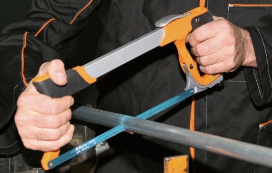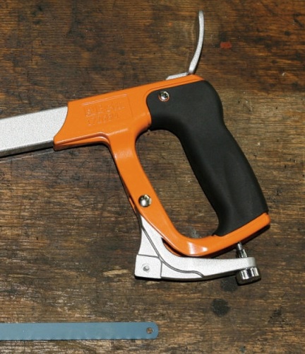 Seghetto con sistema di tensionamento della lama a sgancio rapido.