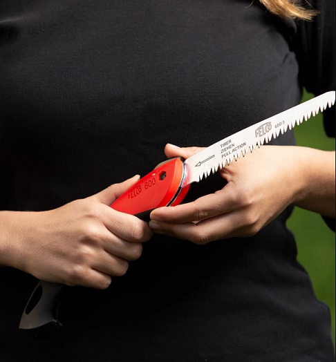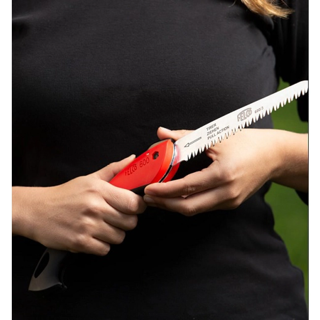 FELCO 600/3 seghetto o sega pieghevole a taglio tirante con lama lunga 160 mm. Made in Switzerland by FELCO è ideale per tutti i lavori di potatura di formazioni di ceppi e di potatura di fruttificazione. Consigliato in viticoltura. Caratteristiche del seghetto FELCO 600/3: - La tecnica di taglio tirante riduce lo stress ed evita la torsione della lama. - Lama resistente alla corrosione in acciaio cromato. - La punta dei denti è indurita per impulso: questo aumenta la longevità del bordo tranciante della sega. - La geometria del dente è ottimizzata per il taglio di legno verde. Migliora la fuoriuscita dei trucioli e l'attacco più morbido evita scossoni al braccio dell'operatore. - Il manico anti-scivolo ed ergonomico offre una buona presa. - La lama è pieghevole e consente di tenere il seghetto in tasca.