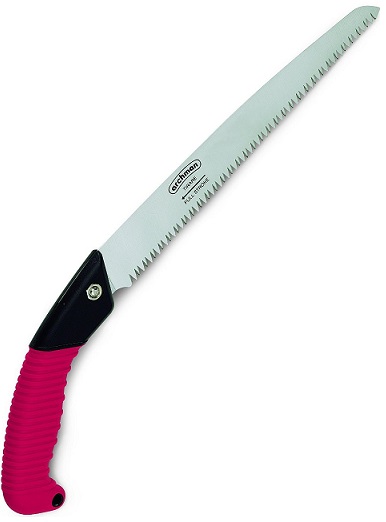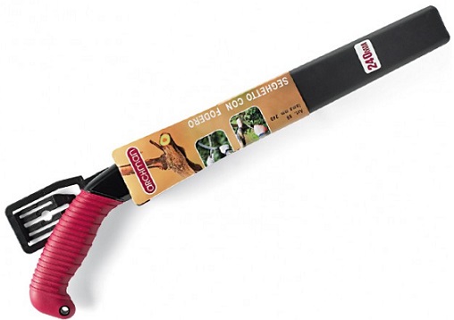 Seghetto per potatura a lama fissa. Lama cromata temperata HRC 50-52. Impugnatura in alluminio rivestito in materiale gommoso antiscivolo. Dotato di fodero.