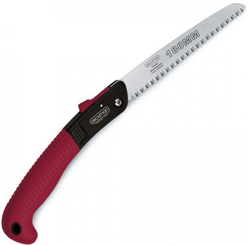 Seghetto da potatura a lama chiudibile. Lama cromata temperata HRC 50-52, dentatura temperata estremamente affilata per un taglio veloce e pulito.