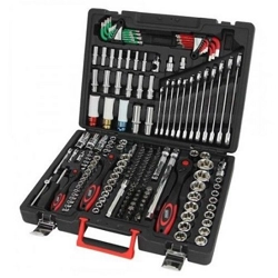 CASSETTA REITOOL 94 CHIAVI A BUSSOLA ESAGONALE DA 1/4" + 1/2" 94PZ. La cassetta è in plastica ABS antiurto di dimensioni 380x265x70 mm.Cricco a 72 denti "Lighweight". E' composta da:- 17 bussole esagonali da 1/2" mm. 10 11 12 13 14 15 16 17 18 19 20 21 22 24 27 30 32- 13 bussole esagonali da 1/4" mm. 4 4,5 4 4,5 6 7 8 9 10 11 12 13 14- 5 bussole prolungate da 1/2" mm. 14 15 17 19 22- 8 bussole prolungate da 1/4" mm. 6 7 8 9 10 11 12 13- 2 bussole per candele da 1/2" mm.16 - mm. 21- 1 snodo cardanico da 1/4" - 1 snodo cardanico da 1/2"- 2 prolunghe manovra da 1/2" mm. 125 - mm. 250- 2 prolunghe manovra da 1/4" mm. 50 - mm. 100- 1 impugnatura cacciavite da 1/4"- 3 chiavi esagonali mm. 1,5 2 2,5- 1 chicco reversibile da 1/4"- 1 chicco reversibile da 1/2"- 1 attacco scorrevole da 1/4"- 1 attacco scorrevole da 1/2"- 1 adattatore da 1/2" a 3/8"- 4 bussole con inserto esagonale da 1/4" m. 3 4 5 6- 7 bussole con inserto Torx da 1/4" T 8 10 15 20 25 27 30- 3 bussole con inserto taglio da 1/4" mm. 4 5 6,5- 2 bussole con inserto croce da 1/4" PZD 1 2- 2 bussole con inserto croce da 1/4" PH 1 2- 2 inserti esagonali 10 croce PH 3 4- 2 inserti esagonali 10 croce PZD 3 4- 2 inserti esagonali 10 taglio mm. 8 10 12- 4 inserti esagonali 10 Torx 40 45 50 55- 5 inserti esagonali 10 esagonali 7 8 10 12 14