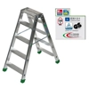 Sgabello DUPLA con scalini da entrambi i lati fissati ai montanti con doppio passaggio idraulico senza rivetti. Questo modello D4 ha 4 gradini + pianetto, un pratico appoggio di seduta che permette di lavorare con le mani libere in sicurezza. DUPLA sgabello è leggero e non ingombrante inoltre gli scalino profondi 85 mm.lo rendono uno sgabello sicuro e utilizzabile da professionisti per un uso intensivo. Le cerniere monoblocco sono in alluminio fuso e i compassi antichiusura o antidivaricamento sono in acciaio.L'immagine è dimostrativa.Per il numero di scalini, leggere la scheda tecnica.