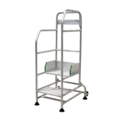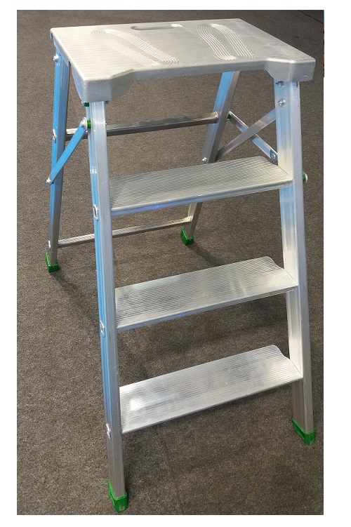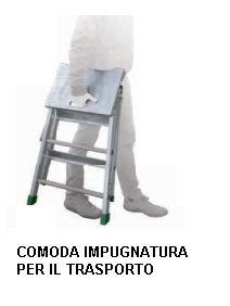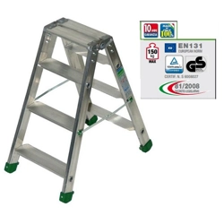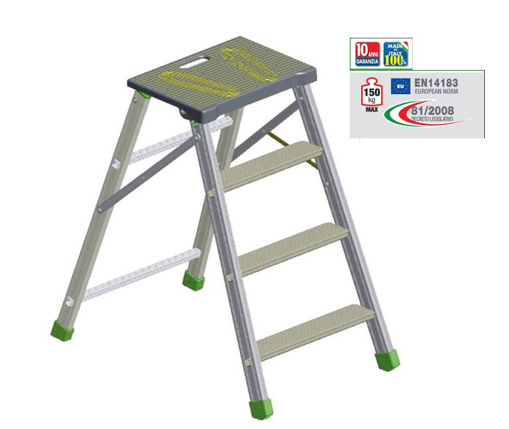 Rif. Facal F-4. Sgabello in alluminio professionale pieghevole. A salita singola con ampia pedana fusa da 32x46 cm. Gradini profondi 110 mm. Comoda inclinazione a 68°. 100% MADE IN ITALY.Portata max 150 Kg.