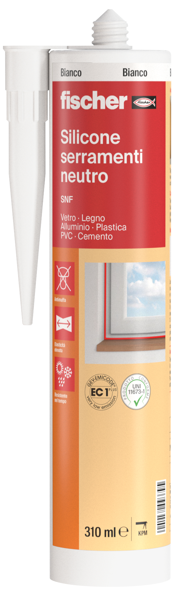 SNF NE - Sigillante siliconico neutro a base alcoxi e a basso modulo, per l’installazione di serramenti. Prodotto conforme alla UNI 11673.