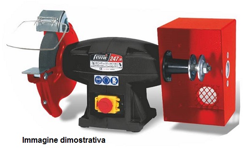 Codice FEMI 8.02.32.32. Smerigliatrice combinata mola/spazzola. Robusta e affidabile, orientata a lavorazioni industriali grazie alla grande affidabilità e robustezza. Indicata per operazioni di sgrossatura ed asportazione materiale. Alle caratteristiche della doppia mola si aggiunge la funzionalità per operazioni di sbavatura e pulitura pezzi. E' predisposta per il montaggio di mole e spazzole di vario genere. E' conforme alle normative CE. Caratteristiche tecniche Motore a induzione, affidabile e silenzioso. Completa di protezione antinfortunistiche e attacchi per aspirazione. Dotata di interruttore START-STOP con funzione antiripristino di sicurezza e fungo lucchettabile. 3 anni di garanzia.