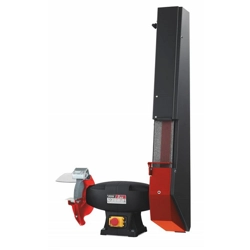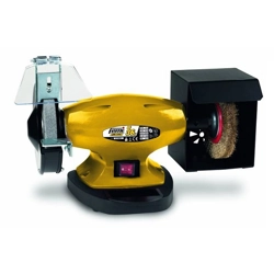Art. Femi 8.17.02.22. Smerigliatrice levigatrice da banco, mola diam. 150 mm. - Modello BG 56N. Riservata agli hobbisti più esigenti, è dotata di un potente e silenzioso motore monofase ad induzione. La macchina è stata progettata e costruita per operazioni di asportazione di materiale (smerigliatura o affilatura di utensili) e/o pulitura, di qualsiasi tipo di metallo o materiali simili, nelle quali il pezzo in lavorazione viene tenuto in mano. E' dotata di: parascintille trasparente, cuffia di protezione, poggiapezzi, paraschegge regolabile, vaschetta acqua. CertificazioniE' conforme alle disposizioni della Direttiva 2006/42/CE e alle disposizioni di attuazione. Inoltre è conforme alle seguenti disposizioni e relative attuazioni: 2014/30/UE, 2014/35/UE, 2011/65/UE, 202/19/UE. Normativa CE.