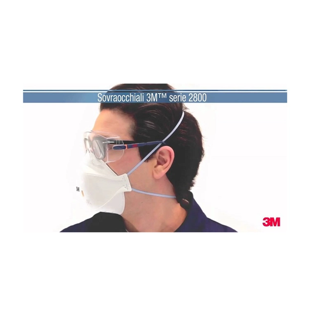 Occhiali di sicurezza 3M 2800. I sovraocchiali di sicurezza 3M 2800 sono progettati per essere indossati sopra la maggior parte degli occhiali da vista, con una minima interferenza. Copertura e visuale sono eccellenti, oltre a un'elevata protezione dagli impatti. Caratteristiche Stanghette regolabili in lunghezza in quattro posizioni per una migliore aderenza e una misura ottimale. Terminali delle stanghette morbidi a profilo basso per dare il massimo comfort e la minima interferenza con gli occhiali da vista. Lente ottica di Classe 1 per una elevata nitidezza del campo visivo ed un maggiore tempo d'uso senza affaticamento degli occhi. Lenti in policarbonato con rivestimento anti-graffio. Angolo della lente regolabile con un perno, per una misura individuale. Occhiale con leggerezza elevata, solo 38 gr.