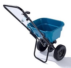 Spargiconcime - Codice Cresco CR.10SW. Con paralizzatore laterale. Facili regolazioni per una perfetta distribuzione. Dispone di 20 diverse impostazioni di distribuzione del fertilizzante e controllo laterale. Lo stampo della tramoggia impedisce che vi rimangano residui di concime. Testato per 1000 ore di uso continuato. Consigliato per superfici inferiori ai 1000 metri quadri. Ruote in plastica.