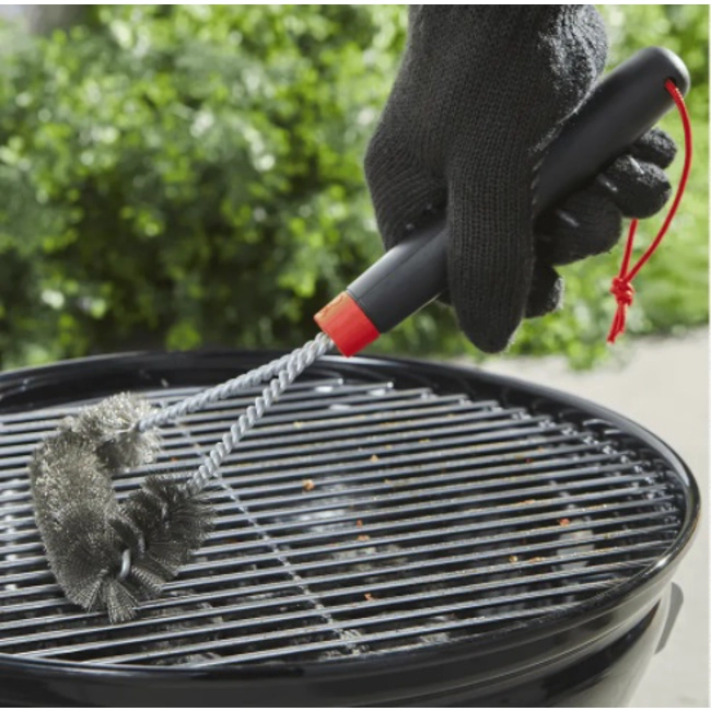 Spazzola per griglie triangolare a T Art. Weber 6277.Questa spazzola per griglie a tre lati è ideale per rimuovere il grasso e i detriti dalle griglie di cottura di tutte le dimensioni. Il design della spazzola con setole su 3 lati consente di pulire facilmente e rapidamente le aree più grandi, mentre i lati più corti possono essere utilizzati per i bordi e per rimuovere i detriti tra le griglie. L'impugnatura confortevole offre una presa sicura durante la rimozione il cibo attaccato e dello sporco più ostinato. Usa questa spazzola per pulire le griglie prima di ogni utilizzo in modo che il tuo barbecue duri di più e il tuo prossimo pasto sia delizioso tanto quanto quello che hai appena cucinato.30 cm di lunghezza per raggiungere tutte le aree della griglia.Anello per appendere e riporre facilmente la spazzola.