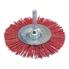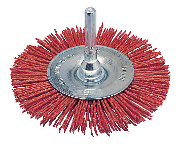 Spazzola a tazza per Trapano - Rif. 0611. Con filo in nylon abrasivo arancio 120 gr. Lunga durata, leggerezza, non graffiano e non arrugginiscono. Nota Differenza tra circolarine GG e circolarine G. Le GG sono ingegnerizzate per lavori gravosi e con maggiori velocità di rotazione. Ciò permette di ottenere il risultato desiderato in minor tempo e maggior aggressività. Montabili anche su utensili ad aria. Indicazioni generali LA SCELTA DELLA FORMA DEL PRODOTTO DIPENDE DALLA SUPERFICIE SULLA QUALE SI LAVORA: -Tazza: per lavorazioni su superfici piane -Conica: per superfici ad angolo o a spigolo, lavora meglio di "taglio". -Circolare: per lavorare di taglio su superfici strette, sporgenti o incavate (cordoni di saldatura o teste di tubo).FILAMENTI La tipologia e la formazione del filamento determinano il tipo di finitura e lavorazione desiderata: -Acciaio Ondulato: Lavori leggeri, piccole scorie e ruggine, sbavature leggere. -Acciaio a Mazzetti Ritorti: Azione aggressiva per lavori pesanti come trattamento saldature e sbavature consistenti. -Cordicella Ottonata Liz: Lavori di irruvidimento, ideale su gomma e pneumatici. -Acciaio Inossidabile: Applicazioni su acciaio inox, alluminio e metalli non ferrosi perché non rilascia residui ossidanti. -Ottone: Lavori su superfici in ottone e rame. Assenza di scintille. -Nylon Abrasivo: Varie applicazioni a seconda della grana su alluminio, acciaio, ghisa, legno, marmo e pietre.