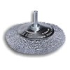 Spazzola conica per trapano - Rif. 0941. In inox ondulato ad alta resistenza. La forma conica le rende adatte per lavori di taglio su superfici irregolari, con spigoli, profili e fessure. Indicazioni generali LA SCELTA DELLA FORMA DEL PRODOTTO DIPENDE DALLA SUPERFICIE SULLA QUALE SI LAVORA: -Tazza: per lavorazioni su superfici piane. -Conica: per superfici ad angolo o a spigolo, lavora meglio di "taglio". -Circolare: per lavorare di taglio su superfici strette, sporgenti o incavate (cordoni di saldatura o teste di tubo). FILAMENTI La tipologia e la formazione del filamento determinano il tipo di finitura e lavorazione desiderata: -Acciaio Ondulato: Lavori leggeri, piccole scorie e ruggine, sbavature leggere. -Acciaio a Mazzetti Ritorti: Azione aggressiva per lavori pesanti come trattamento saldature e sbavature consistenti. -Cordicella Ottonata Liz: Lavori di irruvidimento, ideale su gomma e pneumatici.-Acciaio Inossidabile: Applicazioni su acciaio inox, alluminio e metalli non ferrosi perché non rilascia residui ossidanti. -Ottone: Lavori su superfici in ottone e rame. Assenza di scintille. -Nylon Abrasivo: Varie applicazioni a seconda della grana su alluminio, acciaio, ghisa, legno, marmo e pietre.