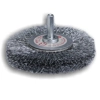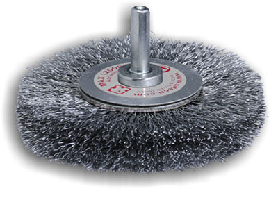 Spazzola circolare con gambo. – RIF. 968. In inox ondulato ad alta resistenza e ad altissime densità di filo. Assicurano lunga durata e grande resa nelle varie lavorazioni industriali. NotaDifferenza tra circolarine GG e circolarine G. Le GG sono ingegnerizzate per lavori gravosi e con maggiori velocità di rotazione. Ciò permette di ottenere il risultato desiderato in minor tempo e maggior aggressività. Montabili anche su utensili ad aria.Indicazioni generaliLA SCELTA DELLA FORMA DEL PRODOTTO DIPENDE DALLA SUPERFICIE SULLA QUALE SI LAVORA:-Tazza: per lavorazioni su superfici piane.-Conica: per superfici ad angolo o a spigolo, lavora meglio di "taglio".-Circolare: per lavorare di taglio su superfici strette, sporgenti o incavate (cordoni di saldatura o teste di tubo).FILAMENTI La tipologia e la formazione del filamento determinano il tipo di finitura e lavorazione desiderata:-Acciaio Ondulato: Lavori leggeri, piccole scorie e ruggine, sbavature leggere.-Acciaio a Mazzetti Ritorti: Azione aggressiva per lavori pesanti come trattamento saldature e sbavature consistenti.-Cordicella Ottonata Liz: Lavori di irruvidimento, ideale su gomma e pneumatici.-Acciaio Inossidabile: Applicazioni su acciaio inox, alluminio e metalli non ferrosi perché non rilascia residui ossidanti.-Ottone: Lavori su superfici in ottone e rame. Assenza di scintille.-Nylon Abrasivo: Varie applicazioni a seconda della grana su alluminio, acciaio, ghisa, legno, marmo e pietre.