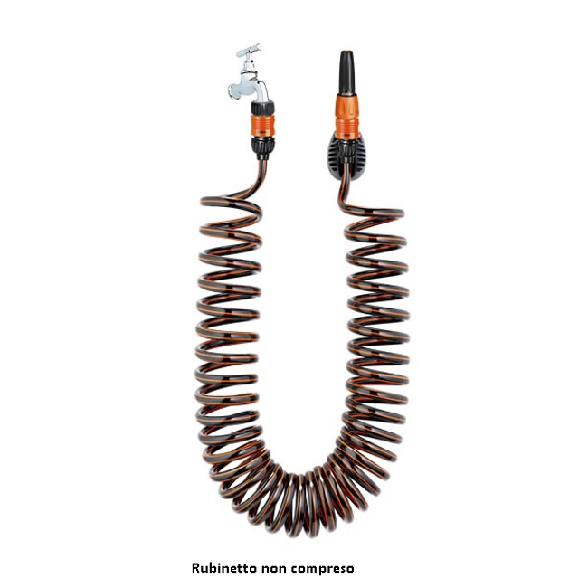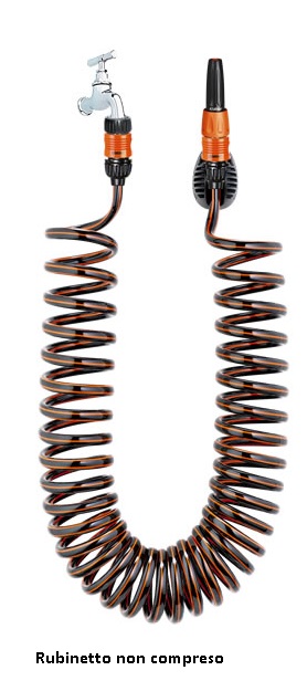 Tubo flessibile spiralato da 10 mt.Grazie alla qualità dei materiali e alla sua forma a spirale il tubo riprende sempre la sua forma originale dopo l'uso. Il Kit contiene10 m. di tubo spiralato presa per rubinetti filettati 3/4" raccordo automatico raccordo automatico con Aquastop lancia con getto regolabile supporto murale con viti e tasselli. CaratteristicheOccupa pochissimo spazio.Appendibile a muro.Dotato di pratico sistema Aquastop.Regolazione: apertura/chiusura.Ideale per un utilizzo in balcone, terrazzo, piccoli giardini, ma anche in barca e campeggio.