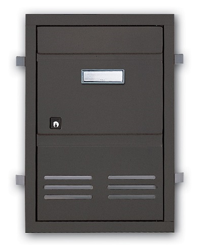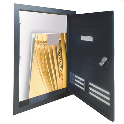 Sportello da incasso in alluminio - rif. Alubox SC2GH. In alluminio anodizzato verniciato ghisa. Sprovvisto di feritoie per l'introduzione della posta. Con feritoie per il controllo della posta all'interno. Per esterno. Made in Italy.