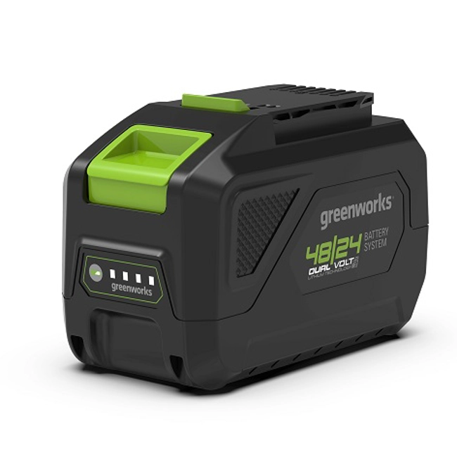 Starter kit DVT GSK4824B4 batteria G4824B4 48/24V 8Ah/4Ah e caricabatterie 4A - solo DVT M - 2934307. Lo starter kit DVT alimenta tutti gli attrezzi elettrici e da giardino 48/24VTecnologia agli ioni di litio di GreenworksNessuna autoscarica, ricarica rapidaI LED integrati indicano lo stato del caricoKit composto daBATTERIA G4824B4 48/24V 8Ah/4Ah Le batterie Greenworks garantiscono alte prestazioni e lunga durata grazie all'elevata capacità di carica.Le batterie G4824B4 a doppia tensione, sono batterie intelligenti, possono alimentare sia strumenti a 48 V che strumenti a 24 V, sono infatti studiate appositamente per fornire 4Ah per strumenti a 48V e 8Ah per strumenti a 24V.Sulla batteria i 4 led indicano la carica residua.Le batterie possono essere ricaricate in qualsiasi momento "senza alcun effetto Memoria", e sono sempre pronte per lavorare anche dopo mesi di stoccaggio.Tempo di ricarica fino a 120 minuti.Voltaggio 48/24VCapacità della batteria 8/4 AhPotenza massima 2100 WWatt/ora 172WhAmpere/ora 8Ah (24V) - 4Ah (48V)Peso 1,20 kg