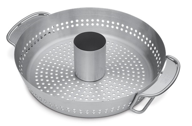 Supporto di cottura per pollame. Realizzata per le griglie di cottura Gourmet BBQ System. Un supporto per la cottura del pollame fuori dell'ordinario in grado di arrostire un pollo intero. Il versatile design 2-in-1 del supporto per pollame Gourmet BBQ System ti consente di cucinare il pollo e i contorni contemporaneamente. Prepara un pollo croccante ma ancora succoso, mentre le verdure cuociono lentamente all'interno del supporto. Arrostisci un pollo intero usando il contenitore di infusione del liquido. Rimuovi il contenitore e utilizza il cestello per arrostire verdure o altri piccoli alimenti. Compatibile con la griglia di cottura BBQ System, resta in posizione durante la cottura.