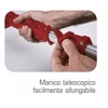 SVETTATOIO forbicione SNIPER EVOLUTION a BATTENTE con manico telescopico da 2,35 a 4,01 metri. Ideale per i lavori di potatura ulivi e piante o alberi da frutto. Lo svettatoio SNIPER BATTENTE ARCHMAN è dotato di un sistema di carrucole e controcarrucole che permettono di effettuare tagli su rami con un diametro fino a 37 mm. con il minimo sforzo e la massima precisione.La testa di taglio, realizzata interamente in vetroresina, è la migliore sul mercato sia per resistenza che per qualità, orientabile sia a destra che a sinistra con un'inclinazione di 110° da una parte e di 45° dall'altra. Per regolare l'inclinazione della lama basta allentare il bullone posto alla base, regolare la lama facendo attenzione che tutti gli ingranaggi interni siano ben allineati (basta controllare che lo stringimento del bullone avvenga regolarmente).Allentando il nodo di fissaggio, l'utilizzatore può modificare la posizione della maniglia.La versione Evolution presenta una seconda impugnatura e la chiusura di sicurezza per la lama.La LAMA in acciaio al carbonio legato temperato HRC 54-56 ha rivestimento antiaderente in fluoro polimeri che permette la diminuzione degli attriti, impedisce la formazione della ruggine, mantenedola più a lungo tagliente e riduce la fatica dell'operatore.CONTROLAMA BATTENTE in acciaio al carbonio temperato HRC 53-55 rivestita in nylon rinforzato con fibra di vetro.ASTA telescopica in alluminio, facilmente estensibile per raggiungere i 4 mt.LEVA in acciaio al carbonio legato, temperato HRC 48-50BULLONI in acciaio temperato con fermo antisvitamento.CORPO IN PLASTICA in nylon rinforzato con fibre di vetro.MANICO telescopico in alluminio anodizzato dotato di nervatura che consente il passaggio della corda e nello stesso tempo lo rende più rigido alla flessione.Per regolare l'altezza dell'asta è sufficente allentare il bullone lungo la stessa e regolarla a piacimento.Il taglio è attivabile tramite maniglia scorrevole lungo l'asta: tirandola con una mano si azionano le lame. La maniglia è anche dotata di blocco di sicurezza, per bloccare le lame in posizione chiusa con un semplice gesto.Tirando il cavetto in basso si attivano le lame anche dalla seconda impugnatura.Progettato e costruito interamente in Italia