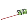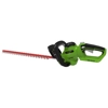 Tosasiepi A BATTERIA - Art.2200907 - SOLO CORPO MACCHINA. La batteria agli ioni di litio G-MAX 40V offre bassi costi di gestione, bassi costi di manutenzione, senza fumi spiacevoli da respirare e senza emissioni nocive per l'ambiente. Il potatore richiede solo una batteria. Una seconda può quindi essere tenuta sotto carica. CaratteristicheLame in acciaio, tagliate al laser, a doppio taglio da 61 cm (24 ") per prestazioni di taglio ottimali. Apertura dei denti 27 mm. Impugnatura ruotabile di 90° a sinistra e destra per un migliore controllo durante il taglio.Impugnatura ammortizzata per il massimo comfort dell'operatore. Due interruttori per la massima sicurezza.Alimentazione a batteria. Le batterie Green Works garantiscono alte prestazioni e lunga durata grazie all'elevata capacità di carica. Il caricabatteria è dotato di Led per indicare la ricarica in corso. 4 led sulla batteria indicano la carica residua.Le batterie possono essere ricaricate in qualsiasi momento "senza alcun effetto Memoria".Le batteria sono sempre pronte per lavorare anche dopo mesi di stoccaggio. Batteria compatibile con tutti i prodotti Green Works entro i 40V.Batteria da 40V-2Ah o batteria da 40V-4Ah e caricabatteria NON SONO INCLUSI.Autonomia con batteria da 2Ah ca. 35 minutiAutonomia con batteria da 4Ah ca. 70 minuti